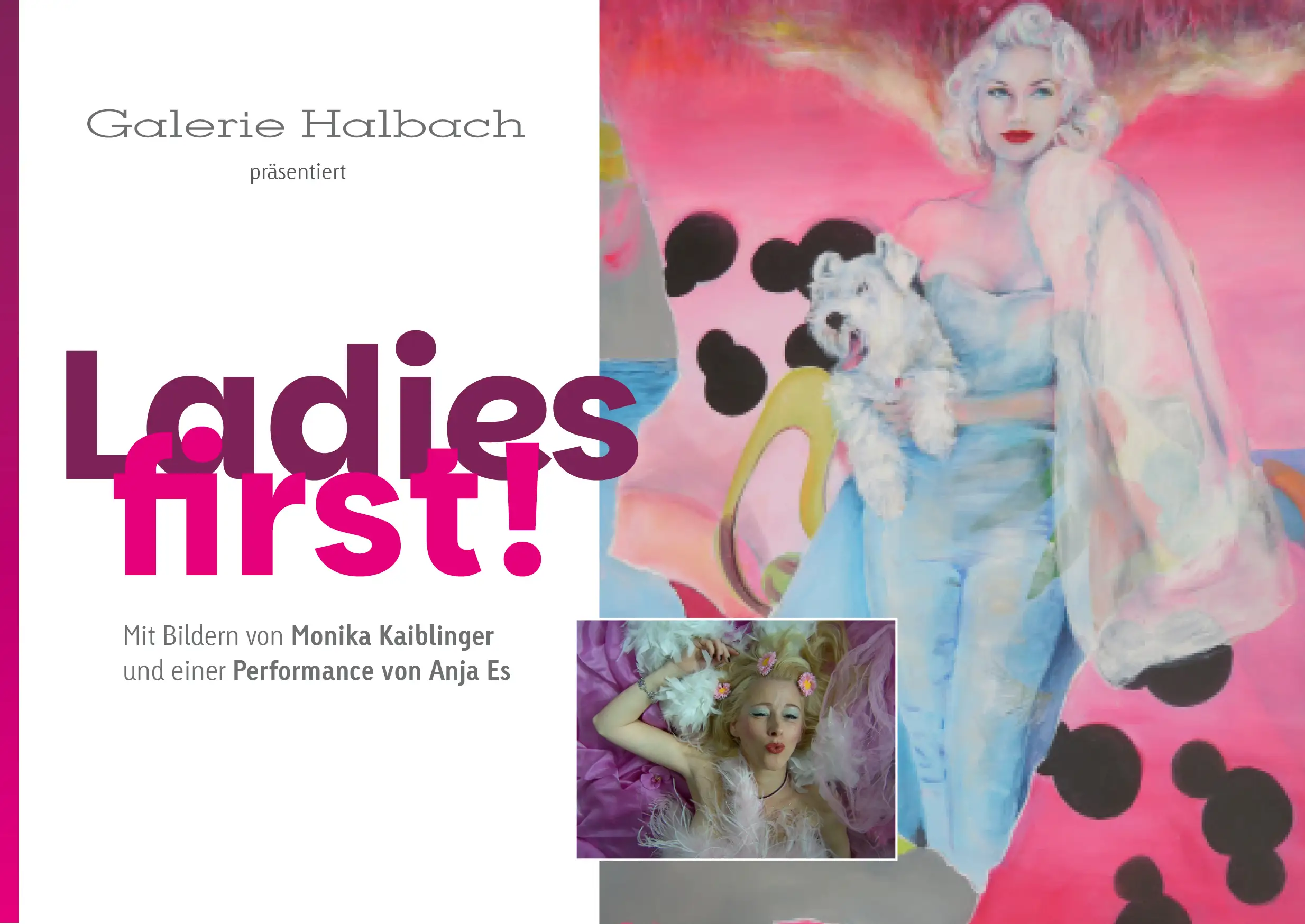 in diesem Jahr lassen wir den Damen den Vortritt: Unter dem Titel „Ladies first!“ präsentieren wir Ihnen Bilder der Künstlerin Monika Kaiblinger und eine Performance der Künstlerin Anja Es.