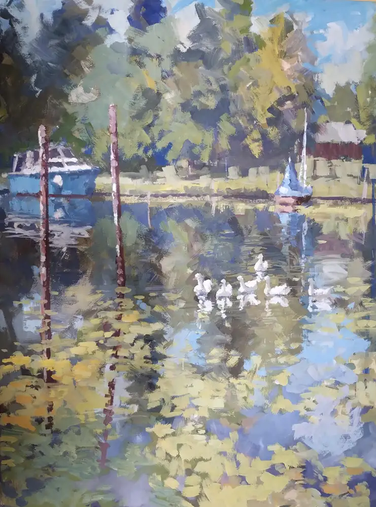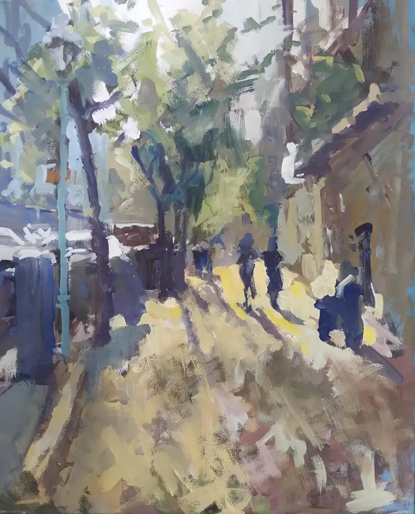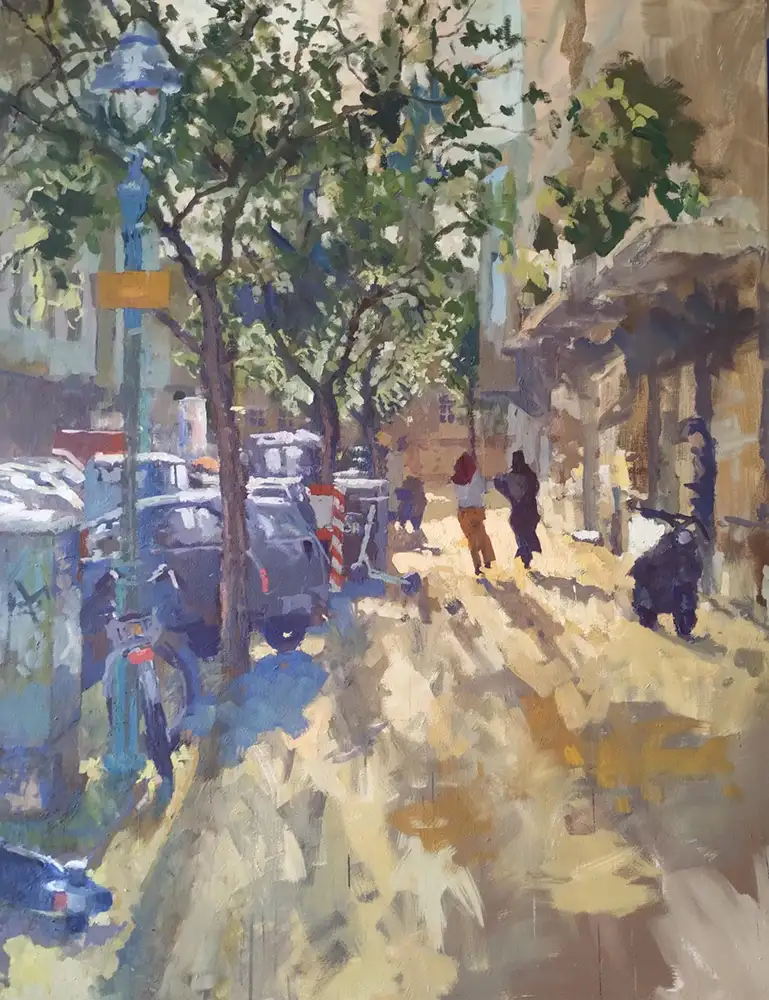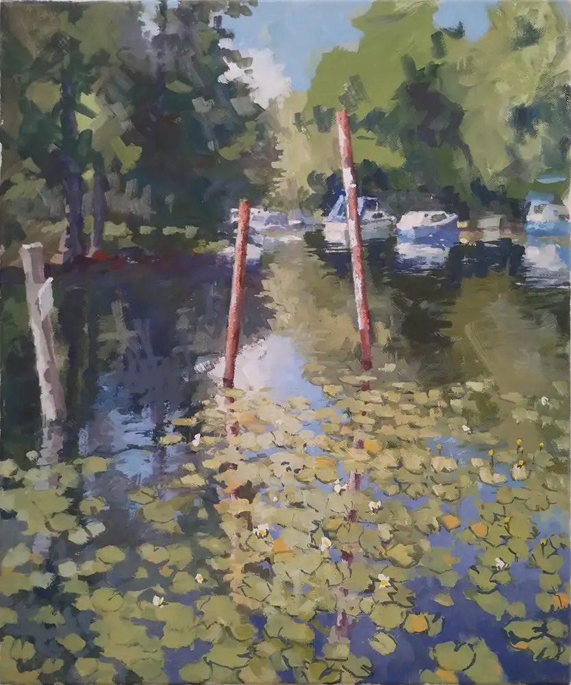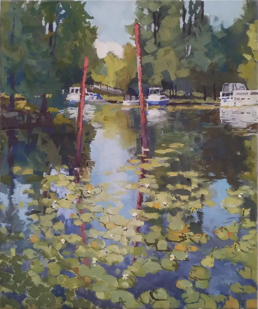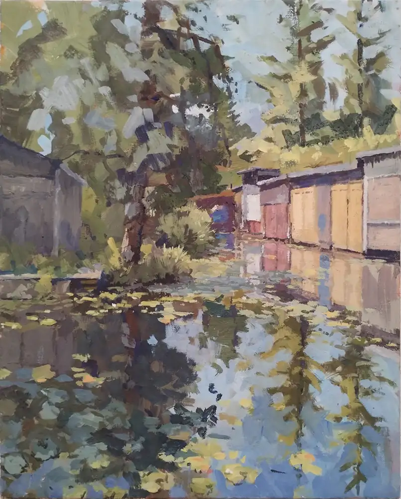 Frank Suplies stimmungsvolle Stadt- und Landschaftszenen werden kontrastiert und in Beziehung gesetzt mit Clemens Heinls ausdrucks­starken Holzplastiken.